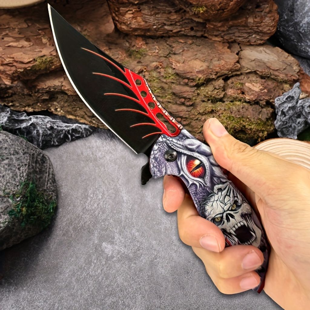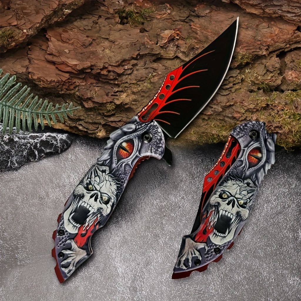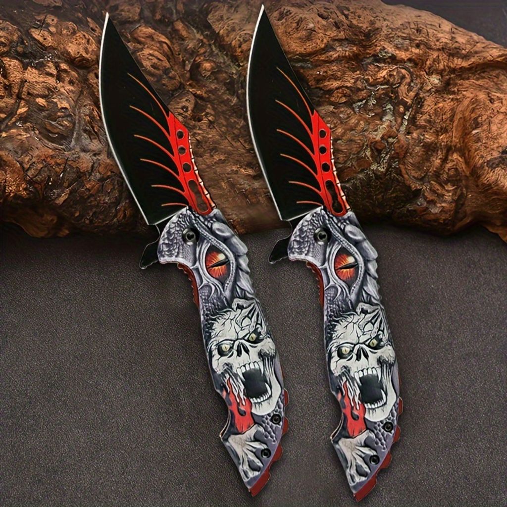 1 PC DE Pocket Knife 3.54 Inch, Light Weight Folding Knife, Eye-catching Printed Texture Handle, EDC Outdoor Camping Fishing Hiking Knife For Men And Women, Wise Choice For Christmas Gift