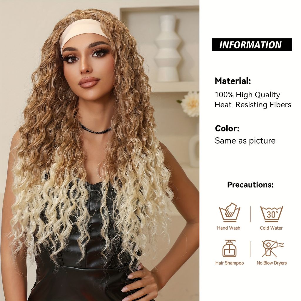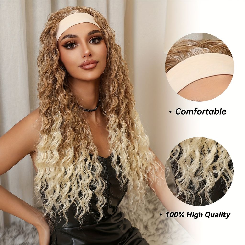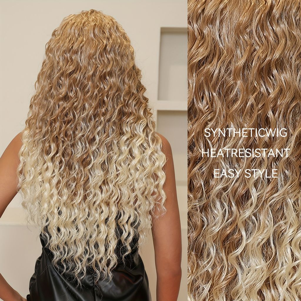 26-inch elegant curly wavy wig with gradient blonde fiber wig