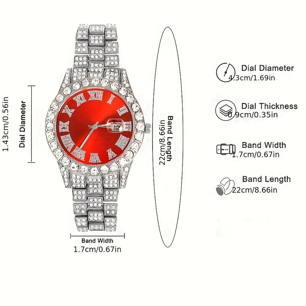 4pcs per set, Men's Wrist Watch & Hip Hop Cuban Chain Necklace Bracelet Set