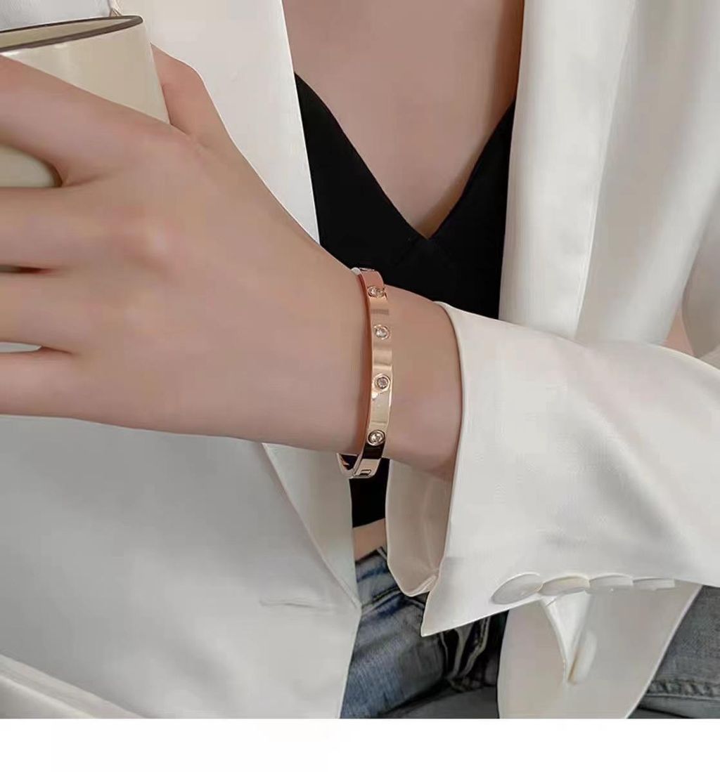 Classic Design Fashion Stainless Steel Oval 18k Real Gold Plated Pave Zircon Cuff Bangle Bracelet For Women Jewelry