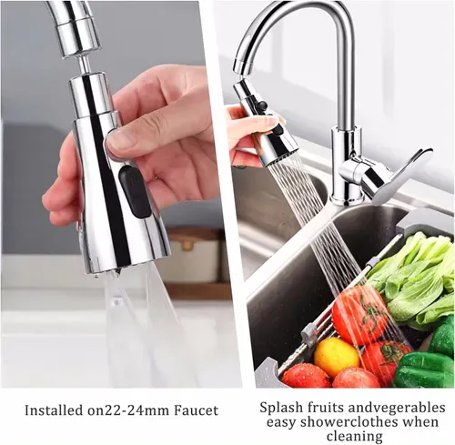 This Kitchen Sink Sprayer Head Has Three Functions, Stream, Spray And Pause.Simply Press And Release The Button To Switch From Regular Stream To Spray.Suitable for faucets with external 22x1 thread