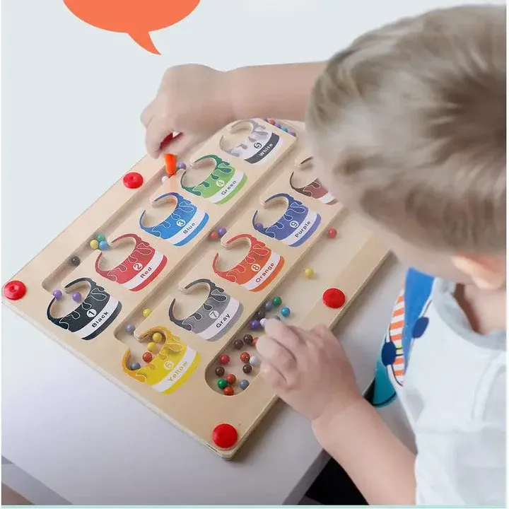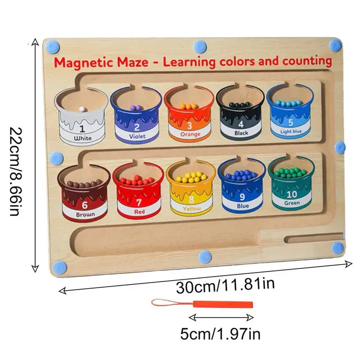 * Manufacturer recommended age: 3 years and up.Magnetic Toddler Games : Hands-on way to explore colors and numbers! Our sturdy wood maze has 10 built-in “paint cans”representing numbers 1-10, plus 65 magnetic beads in 10 bright colors for kids to count. Note: Please keep the pen upright for better use.