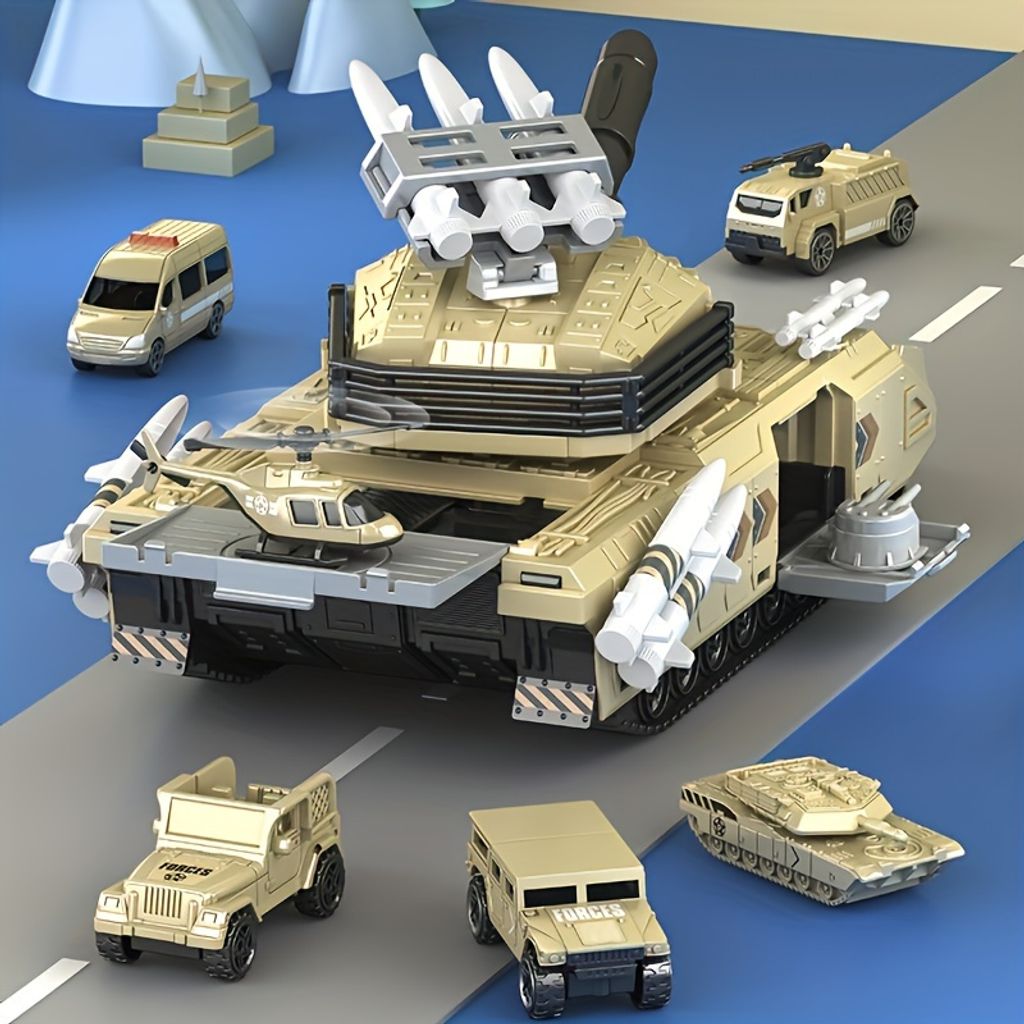 Tank toy set with soldiers, armored vehicles, jeeps, helicopters and more