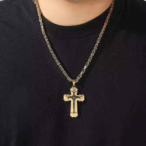 Two-Tone Hollow Crucifix Cuban Chain Necklace